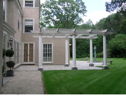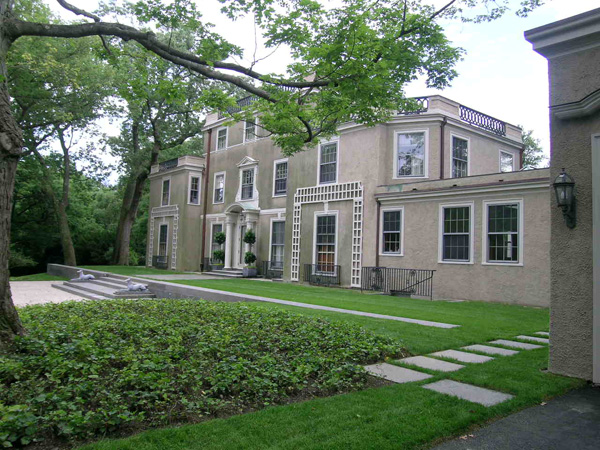 Master planning, Renovation Design and Construction Administration for a 1903 English Regency residence. The multi-year project included expanding the original dining room, adding a new conservatory, exercise room with ensuite steam shower, expanded garage facilities, third floor entertainment center and restoration of the unpainted exterior stucco to match the original. Exterior improvements included custom terrace, entries, elaborate stone work, design and fabrication of an original, but never previously installed rooftop ballustrade, and redesigned six column pergolas to replace historic precursors. |