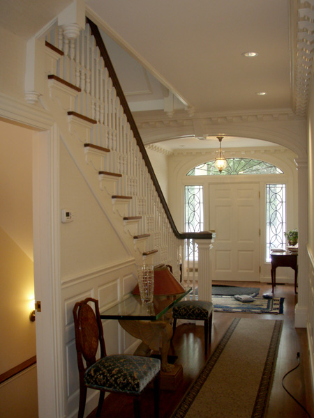 Complete renovation of a 1903 historic residence in the venerable Old Cambridge Historic District. The structure occupies an important corner lot, surrounded by equally majestic historic residences. Previously subdivided into two units, the property was restored to its intended grandeur, while repairing a compromised roof structure, adding a four story elevator and modern conveniences of a cherry and granite multi-station kitchen, sumptuous ensuite bathrooms, restored fireplaces and custom stone, tile and cabinetry throughout. Complications of design and approvals included Historic District, Zoning and Neighborhood processes.