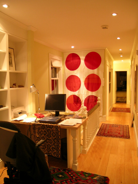 Second floor renovation of a Victorian single family residence to add an open library/study comprising two previously small bedrooms with several walls of bookcases, two built-in desks and open to the main stair hall; and renovation of one large bathroom into separate updated full tub and shower baths.